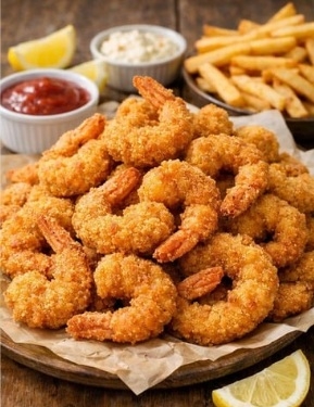 FRIED BAKE AND SHRIMP WITH LETTUCE...